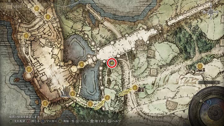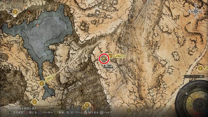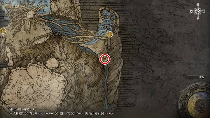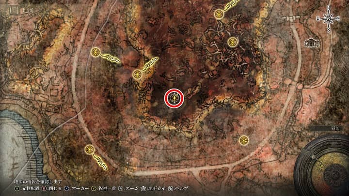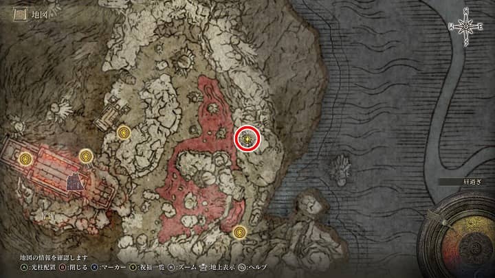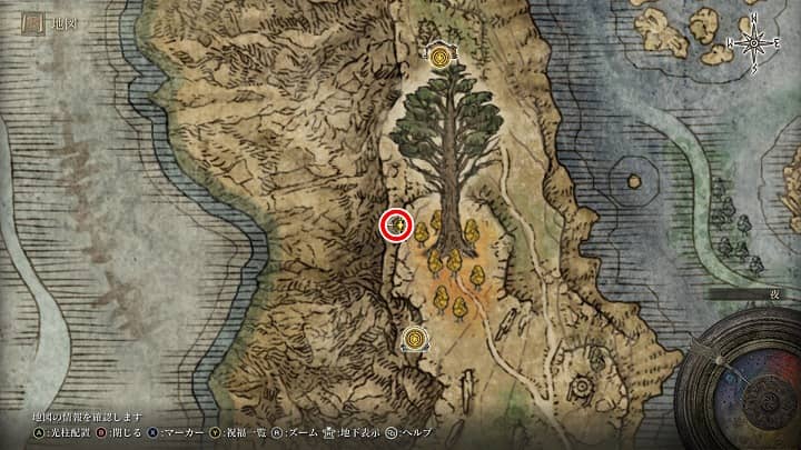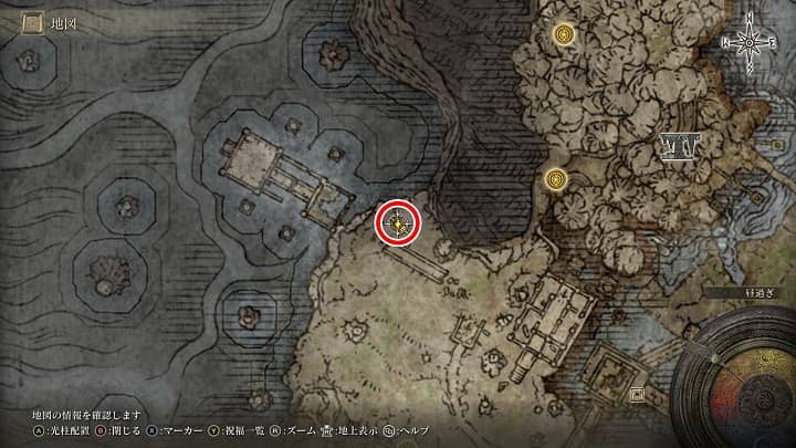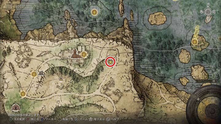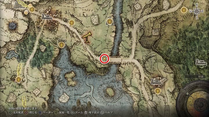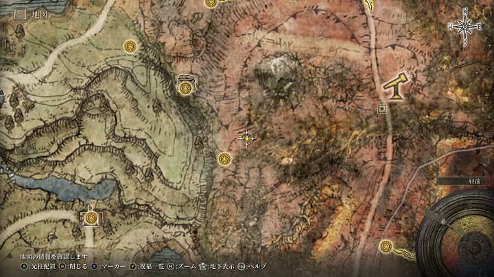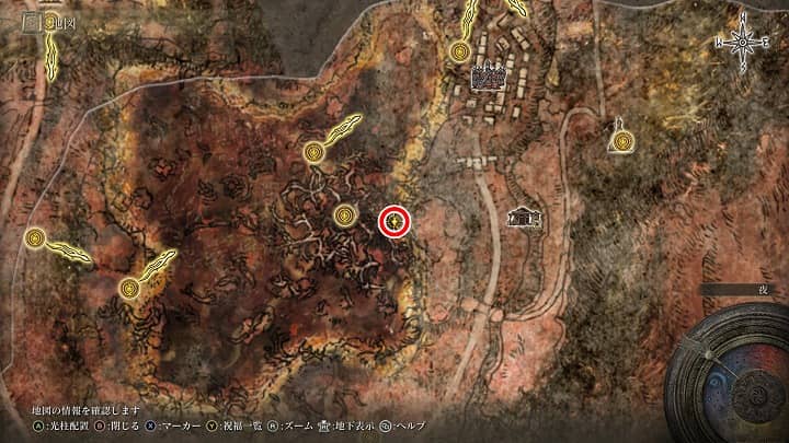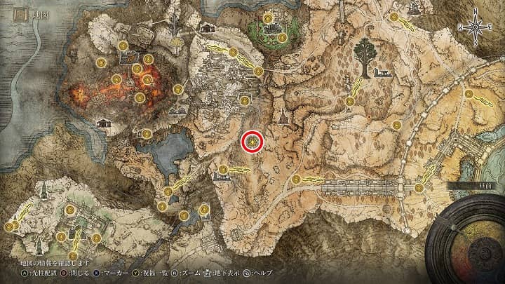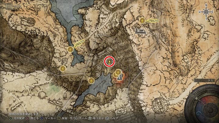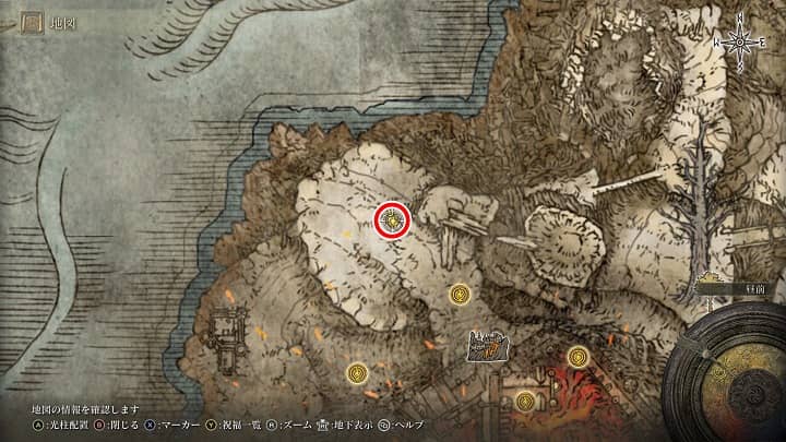 | 大滝口 | 祝福から南の崖近くの丘 | 戦灰「黄金の地」 |