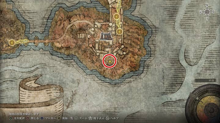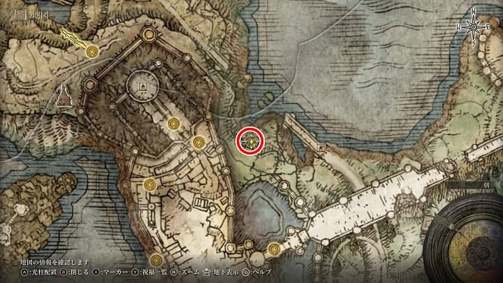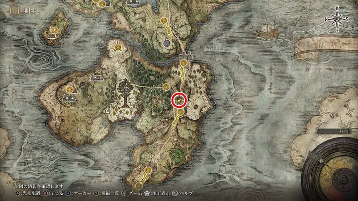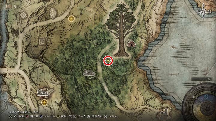 | 罪人送りの道、小脇 | 祝福から少し南東 | 祈祷「黄金樹の護り」 |