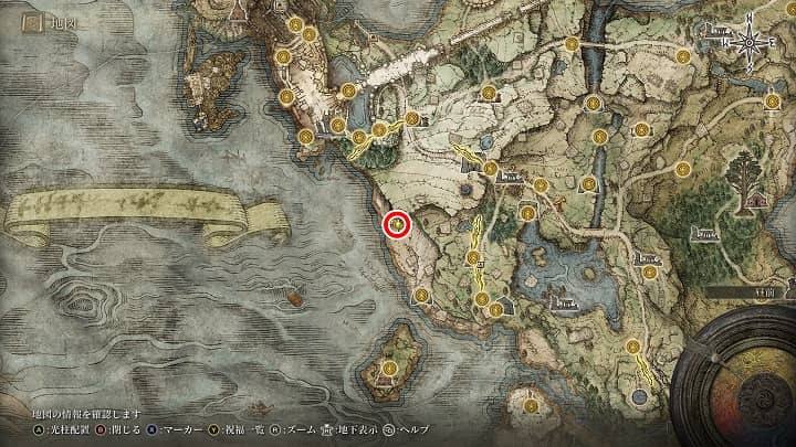| エレの教会 | 北西にある海岸(透明のスカラベ) | 戦灰「踏み込み(回転薙ぎ)」 |