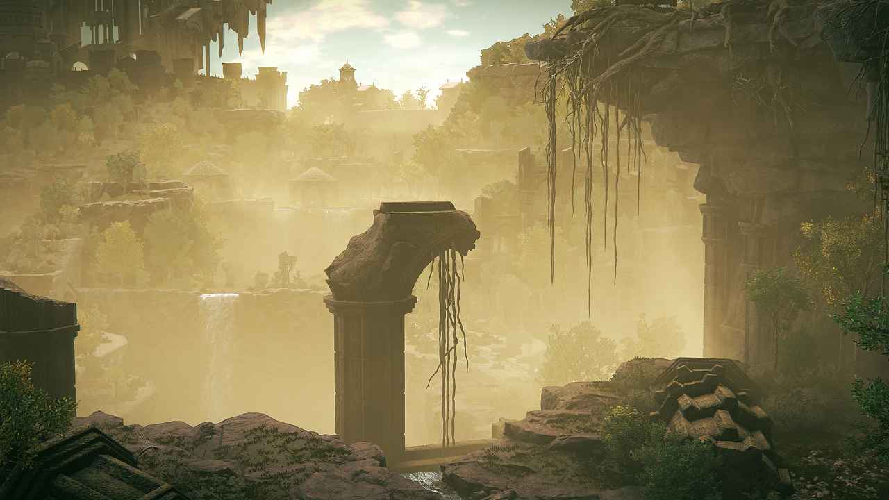 北へ進むと封印された霊気流があるが、封印を解除できる石積みはしばらく先に行った崖上にある。崖上へ行くには遺跡内を通っていく必要があるが、裏技的な要素として封印された霊気流付近で「マルギットの拘束具」か「モーグの拘束具」を使用するか、腐敗地帯辺りなどの遺跡の外から石積みが見える位置からバリスタで狙撃することでも崖上にある石積みを破壊することができる。