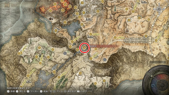 昇降機で登った先に祝福「古遺跡断崖、対岸」があるのでアイテム回収の前に触れておこう。