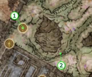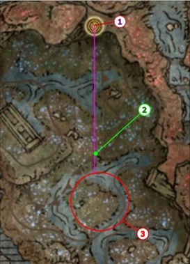 - 先にリアの指遺跡の吊り鐘を吹きユミル卿およびヨラーンと会話している場合は、祝福「隠された地」から進んだ先、ボス「ツリーガード」が出現するあたりにヨラーンの金の召喚サインがある。