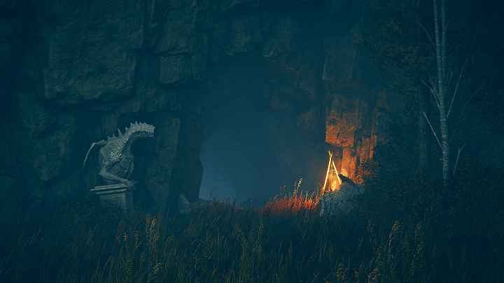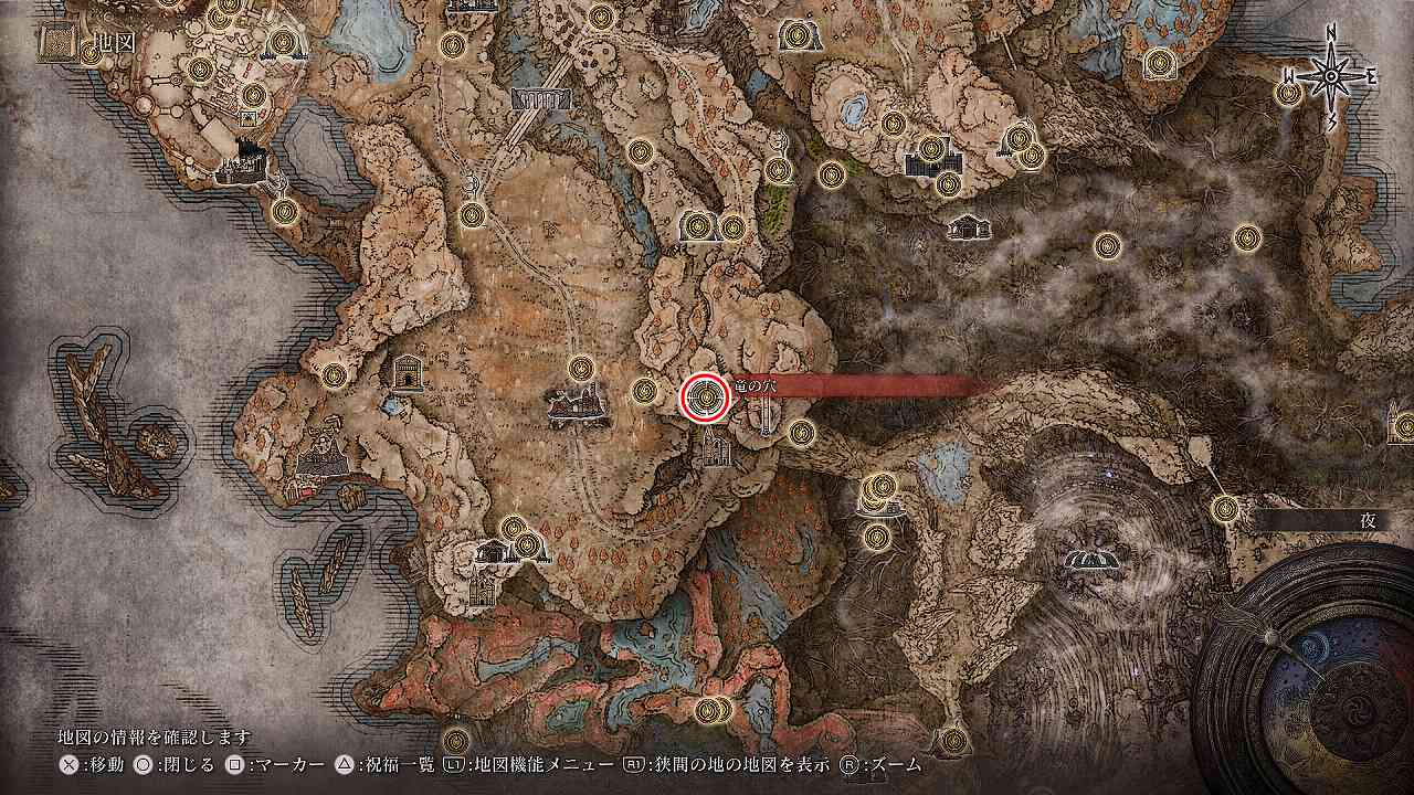 墓地平原の祝福「柱坂中腹」から南西方面の道を南下したところにあるダンジョン。