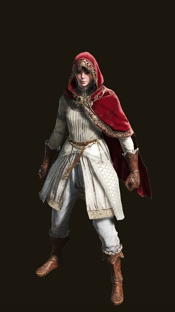 NPC「ローデリカ」がこれを着用しているが、調霊師になった後は赤フードを捨ててしまう。
