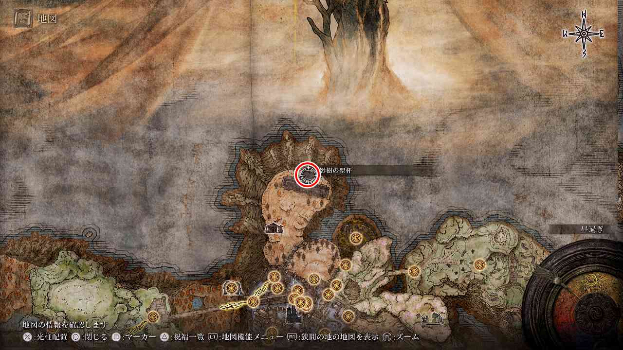 聖杯があるだけで、聖杯近くでは影樹の破片が5つ拾える。
