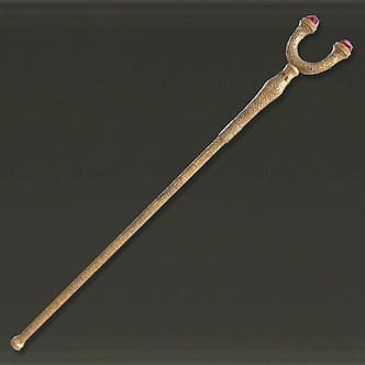 入手性に関しても黄金律の聖印はアルター高原で最序盤から入手可能なのに対し、こちらは火山館の神肌の貴種を倒した上で1体しかいないザコ敵のレアドロップが必要と厳しい。総じて非常に立場の苦しい杖と言える。