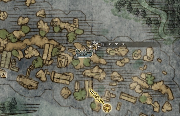 位置は祝福から一番遠いボロ家のところ。近寄るとディアロスの声が聞こえてくる。