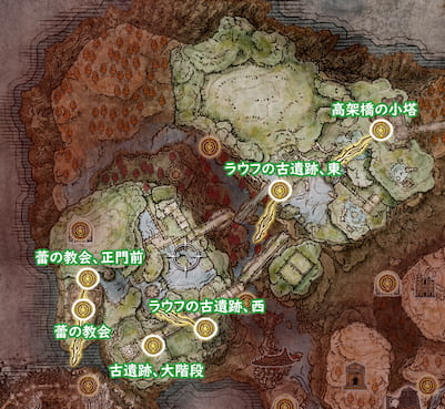 なお、地図断片はラウフの麓方面にあるため、先に入手しておきたい場合はそちらを先に訪れるとよい。