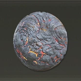 炎攻撃力を有し、頑健が上昇する特殊効果もある小盾。表面の一部が赤く光っているのも特徴のひとつ。