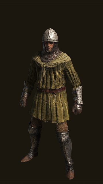 メスメル軍の兵卒が装備する煤で汚れた防具一式。雑兵系の防具としては珍しく他軍との共通部位がない専用仕様。