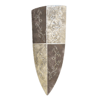 大盾ほどの大きさだが中盾カテゴリとなっており、性能は一般兵が広く用いている真鍮の盾の軽量版にあたる。