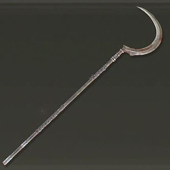長柄の先に、湾曲した刃を付けた武器