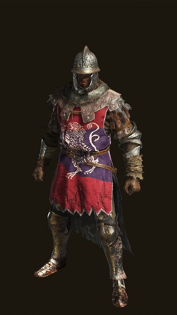 ラダーン軍の一般兵の防具。面頬が付いた兜に赤いサーコートが特徴。