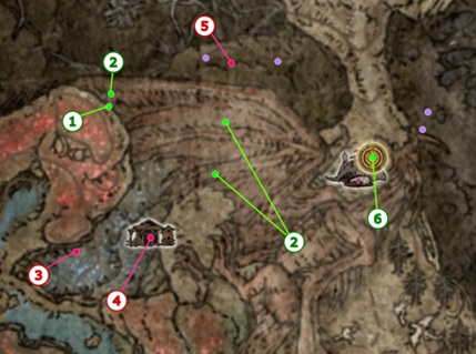 祝福「リアの指遺跡」から北西の坂を上っていく、もしくはギザ山の麓の祝福「竜餐の大祭壇」から巨大な竜の死骸の翼の北西付近から飛び降りて行く。