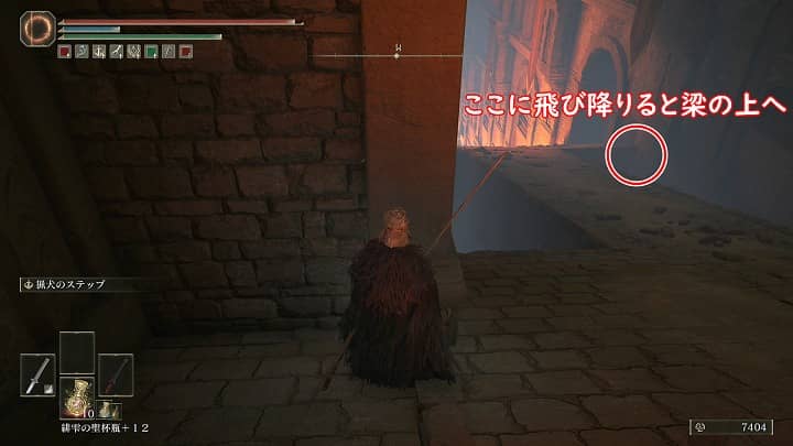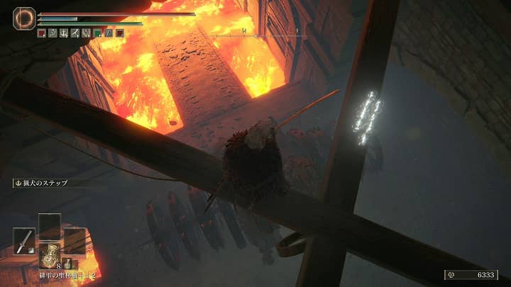 | 指輪指 | 最初の戦車の坂を一番下まで降り、溶岩を越えて突き当たりを左に曲がった先の宝箱 | クイックステップがあると楽 |